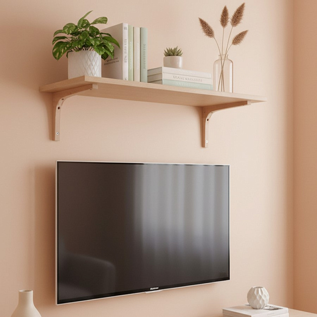 Определите место крепления и наметьте отверстия, используя уровень. Зафиксируйте кронштейн с помощью дюбелей и саморезов. Установите полку, закрепив ее на кронштейнах саморезами.