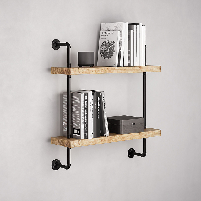 PIPE24BL_NOK с двумя полками в цвете дуб - уникальное сочетание природного и индустриального, самобытный предмет интерьера с характером и историей.