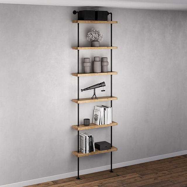 PIPE30BL_NOK с шестью полками в цвете дуб - уникальное сочетание природного и индустриального, самобытный предмет интерьера с характером и историей.