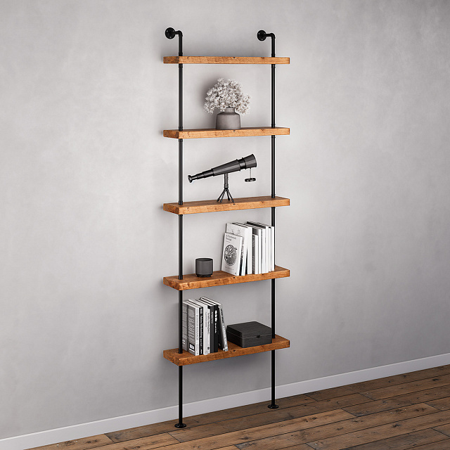PIPE29BL_NRW с пятью полками в цвете палисандр - уникальное сочетание природного и индустриального, самобытный предмет интерьера с характером и историей.