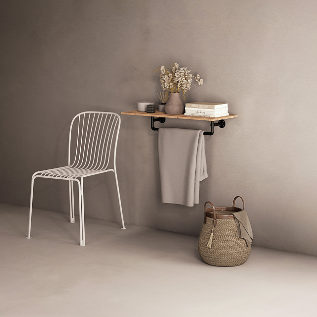 Удобный и компактный комплект PIPE17BL_BO прекрасно подойдет для ванной комнаты, кухни и даже прихожей. Прочная полка из влагостойкого ЛДСП в цвете дуба Бунратти позволяет удобно разместить все необходимое под рукой: в ванной - парфюмерию, косметику и средства для гигиены, в прихожей - вещи для выгула собак, средства для обуви или головные уборы и аксессуары, а на кухне - баночки со специями и посуду. Стильный полотенцесушитель можно использовать для больших банных полотенец, коврика, шарфов и других аксессуаров. Изделие выполнено из качественного металла с надежным порошковым покрытием, что гарантирует долгий срок службы даже во влажной среде. Идеальное сочетание практичности и современного дизайна.