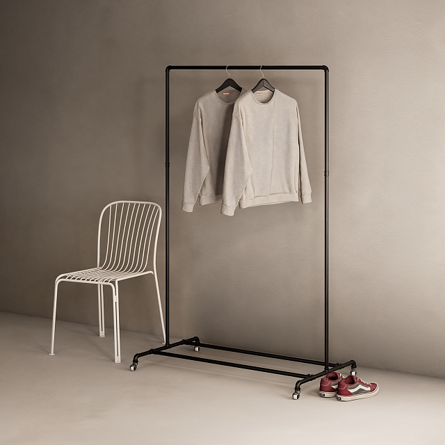 Мобильная и функциональная система PIPE20BL на колесиках для организованного хранения одежды и обуви. Этот рейл заменит громоздкий шкаф и станет идеальным решением для прихожей, гардеробной или даже спальни. Прочная металлическая конструкция обеспечивает устойчивость, а продуманная компоновка включает все необходимое: верхнюю перекладину для одежды на вешалках и полку из труб снизу, предназначенную для аккуратного хранения обуви, сложенных вещей, сумок или коробок. Легко собирается и перемещается в пространстве благодаря прочным колесикам.