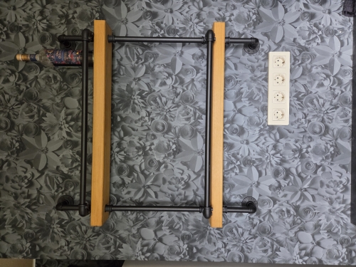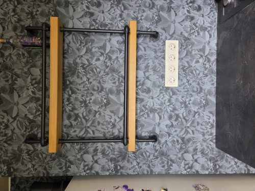 PIPE31BL_NOK с тремя полками в цвете дуб и бортиками - уникальное сочетание природного и индустриального, самобытный предмет интерьера с характером и историей.