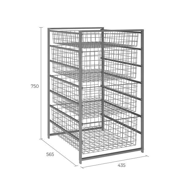 Тумба 7-уровневая с проволочными корзинами Larvij, 435x750x565 мм, серый, 07GA(N)