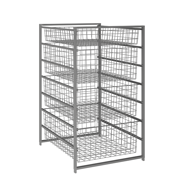 Металлическая тумба серого цвета с проволочными корзинами в 7 ярусов. Идеально подойдет для хранения самых разнообразных предметов, одежды, инвентаря.