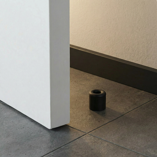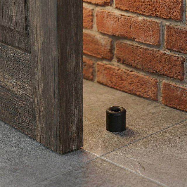 Черный дверной стопор. Монтируется в пол.