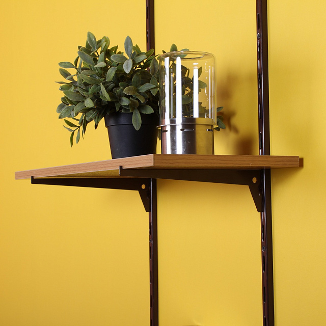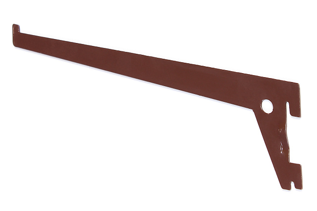 Коричневый однопазный кронштейн Mensola. Предназначен для установки деревянных полок глубиной 200 мм на простую систему. Отлично подойдут для систем хранения в гаражах и на складах.