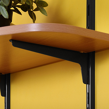Навесьте кронштейн на стойку перфорации. Установите на кронштейны полку глубиной 250 мм.