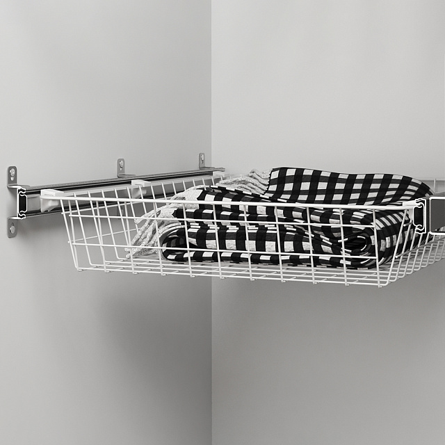 Для установки корзин используются телескопические направляющие. Достаньте из направляющих выдвижные элементы и установите на них пластиковые фиксаторы. Затем установите их на боковые рёбра корзины. Оставшиеся планки прикрутите к стенкам шкафа с помощью саморезов. Вденьте корзину с выдвижными элементами в направляющие.