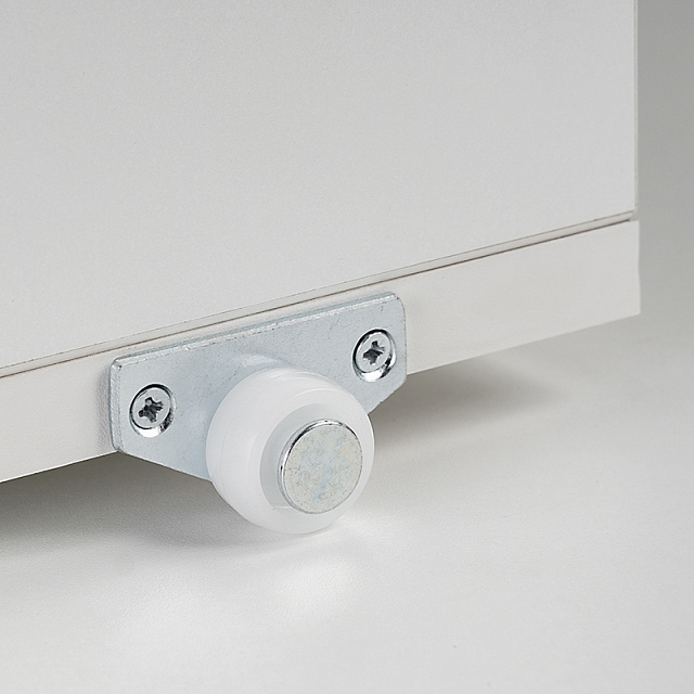 Приложив колеса на плотформе к мебели, отметьте места креплений. Симметрично прикрутите платформы с колесами к мебели саморезами.