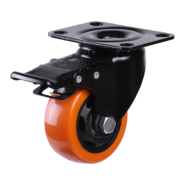 Колесо мебельное поворотное Larvij, на платформе, с тормозом, Ø75 мм, оранжевый / черный, LHDPB-75OR