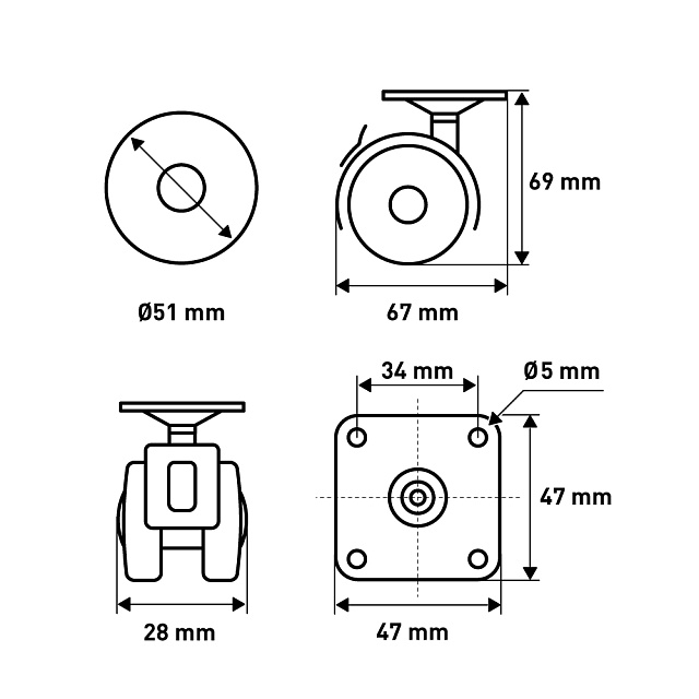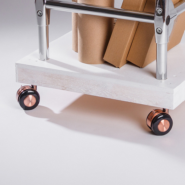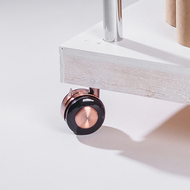 Мебельное колесо на платформе с удобным стопором, нажатие которого фиксирует колесо в статичном положении. Стильное классическое оформление.