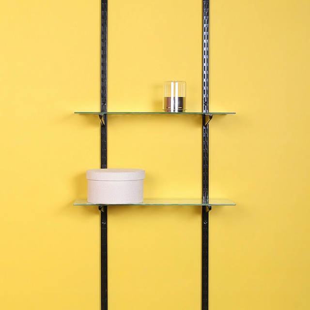 Черная двухпазная стеновая стойка. Один из основных элементов усиленной системы Mensola, на который навешиваются двухпазные кронштейны.