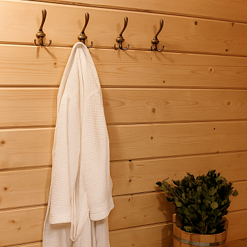 Классический двойной крючок в золотом цвете. Прочный и крепкий, выдерживает большие нагрузки, прекрасно подходит для хранения различных курток и головных уборов. Благодаря минималистичному дизайну хорошо вписывается в любой интерьер.