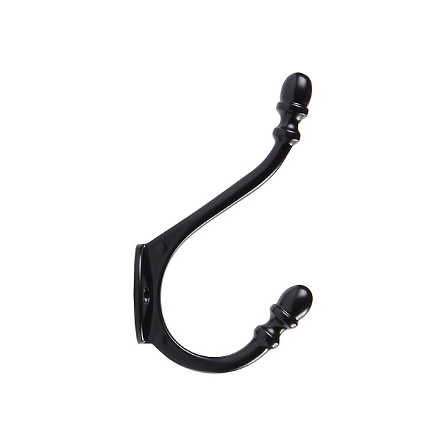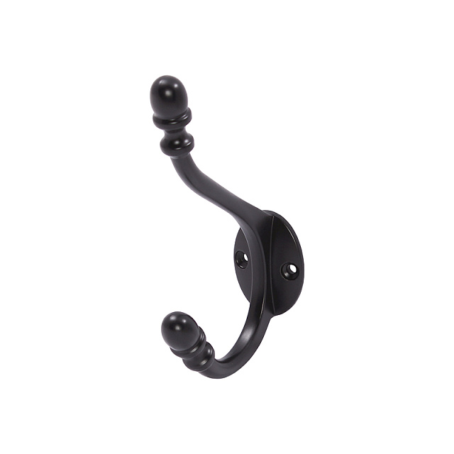 Двойной крючок в черном цвете в викторианском стиле. Изящный, выдерживает большие нагрузки, подходит для хранения различных курток и головных уборов. Благодаря аккуратному дизайну хорошо вписывается в любой интерьер.