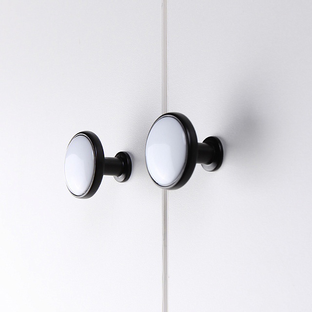 Ручка мебельная Larvij Кноб, 25x32x32 мм, черный / белый, L4.knob04BL