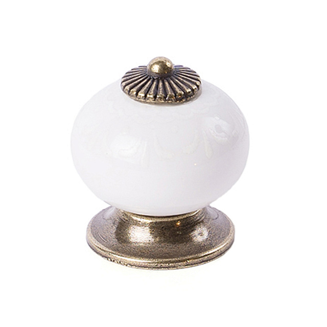 Ручка мебельная Larvij Кноб, 40x40x40 мм, белый / антик бронза, L4.knob22WH