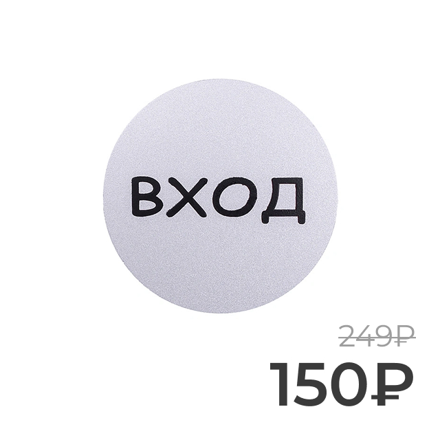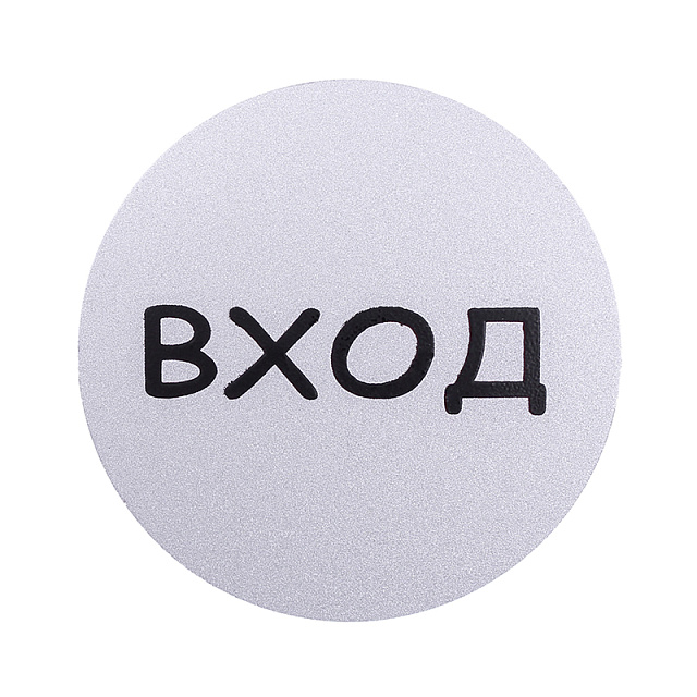 Серебрянная информационная табличка "Вход" круглой формы для обозначения входа. Долговечная и практичная. Подходит для дверей и стен.
