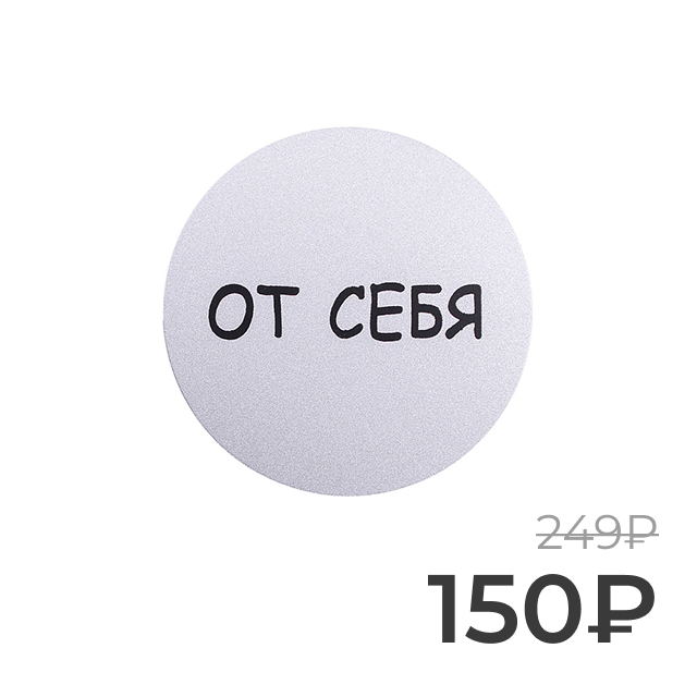 Серебрянная информационная табличка "От себя" круглой формы для обозначения ориентации открывания двери. Подходит для дверей.