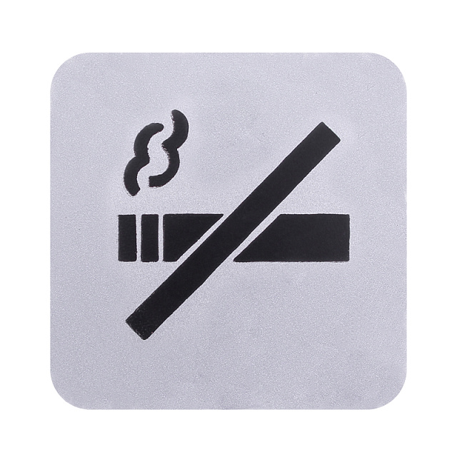 Серебрянная информационная табличка "Не курить" для обозначения территории, не предназначенной для курения. Долговечная и практичная. Подходит для дверей и стен. Силуэт мягкого квадрата.