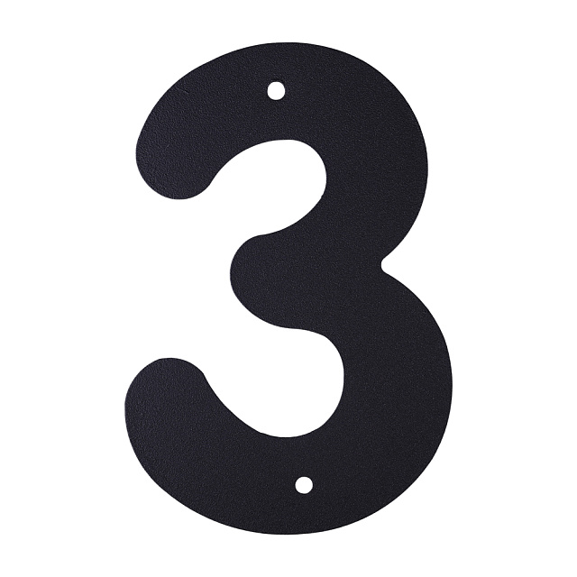 Крупная цифра "3" в черном цвете для входной и межкомнатной двери или забора. Контрастный универсальный цвет обеспечивает хорошую видимость цифры и ее сочетаемость с различными отделочными материалами.