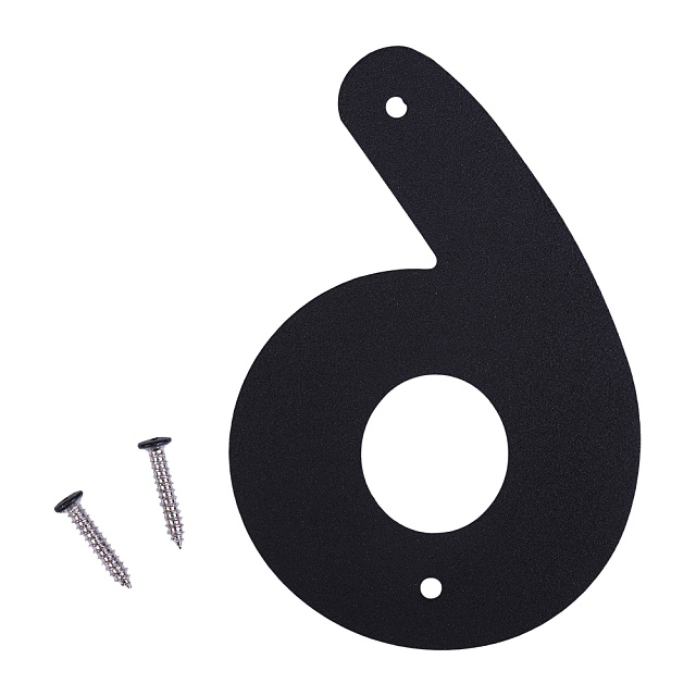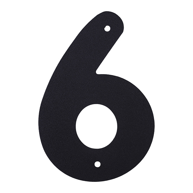 Крупная цифра "6" в черном цвете для входной и межкомнатной двери или забора. Контрастный универсальный цвет обеспечивает хорошую видимость цифры и ее сочетаемость с различными отделочными материалами.