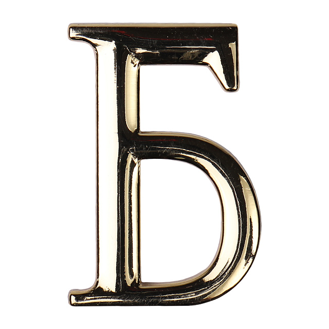 Буква "Б" из цинка в золотом цвете. Используется в качестве декора помещений, можно разместить на межкомнатной или входной двери дома, офиса или кабинета. Прочный цинковый сплав гарантирует долговечность использования и сохранение приятного и броского блеска предмета. Стилистическая универсальность позволяет использовать дверную букву на дверном полотне из разных материалов.
