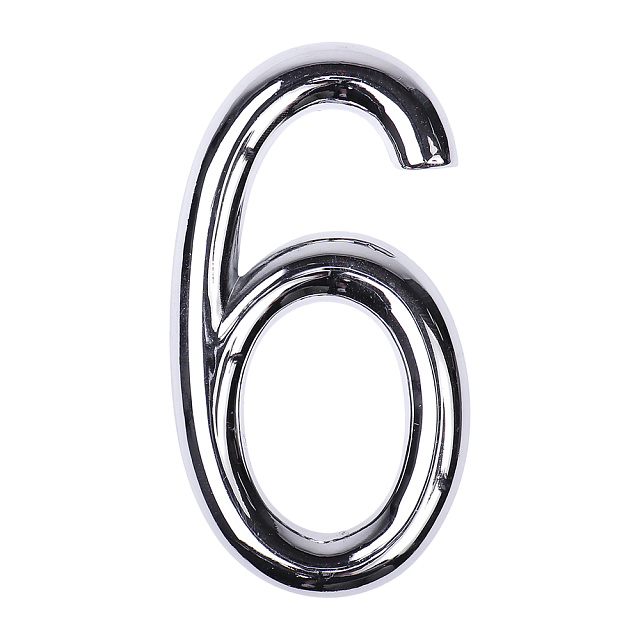 Хромированная цифра "6" из цинка. Используется в качестве декора помещений, можно разместить на входной двери дома, офиса или кабинета. Прочный цинковый сплав гарантирует долговечность использования и сохранение приятного и броского блеска предмета. Стилистическая универсальность позволяет использовать дверную цифру на дверном полотне из разных материалов.