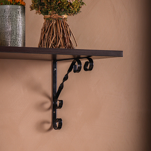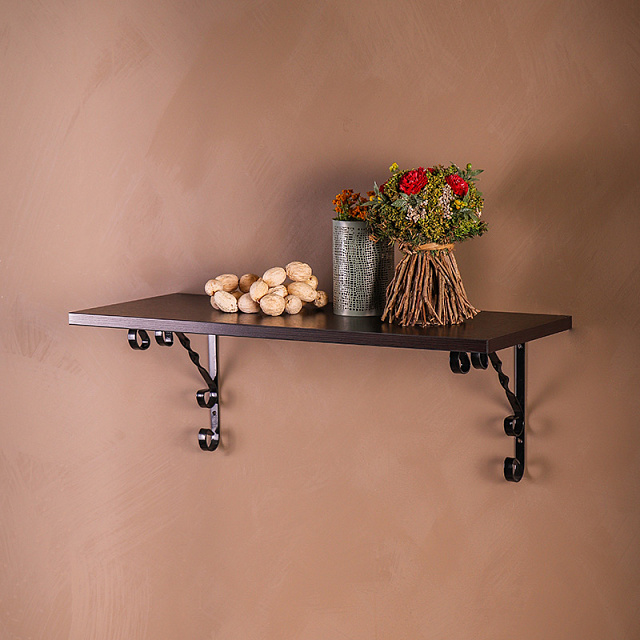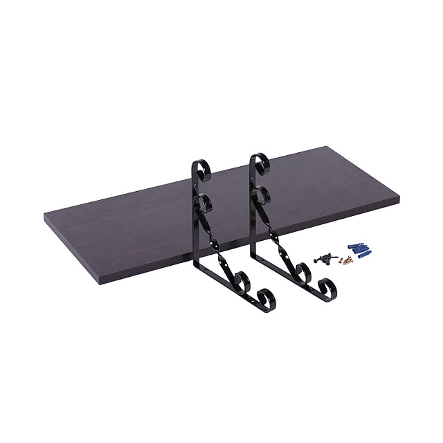 Темный комплект из деревянной полки цвета дуба Венге и двух декоративных кронштейнов черного цвета. Не только стильное и продуманное, но и функциональное решение для дома и дачи. Комплект придаст помещению уюта и индивидуальности.
