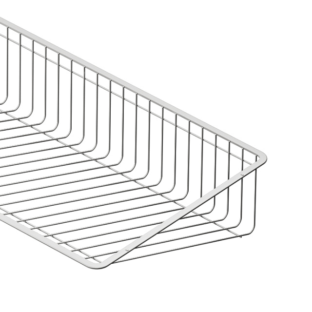 Для установки обувницы используются телескопические направляющие. Достаньте из направляющих выдвижные элементы и установите на них пластиковые фиксаторы. Затем установите их на боковые рёбра корзины. Оставшиеся планки прикрутите к стенкам шкафа с помощью саморезов. Вденьте обувницу с выдвижными элементами в направляющие.