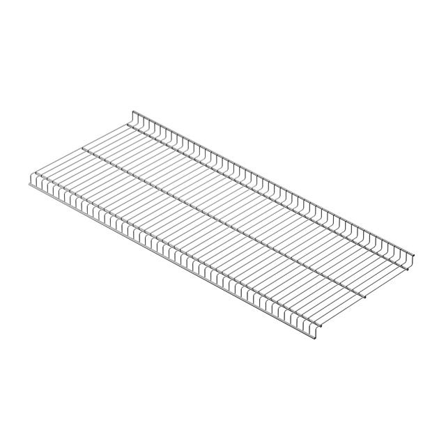Для установки проволочной полки используется комплект пластиковых держателей (4 шт). Они вставляются в боковые отверстия шкафа (по две с каждой стороны). Сверху кладётся полка и фиксируется надавливанием.