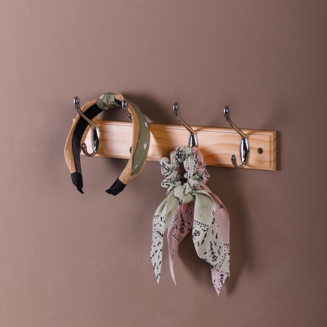 Вешалка для пальто и шапки Larvij, 400x70x50 мм, сосна / xром, LH4PN01CH