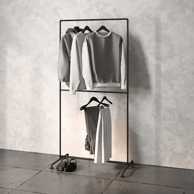 На трубах-перекладинах поместятся более 15 вешалок с одеждой. Комплект также подойдет для хранения различных аксессуаров. При таком хранении вещи проветриваются, остаются всегда на виду и дольше сохраняют опрятный вид. Современный и функциональный вариант организации порядка в стиле лофт. Не только место хранения, но и стильный элемент интерьера, который будет радовать вас каждый раз, когда вы будете использовать его.