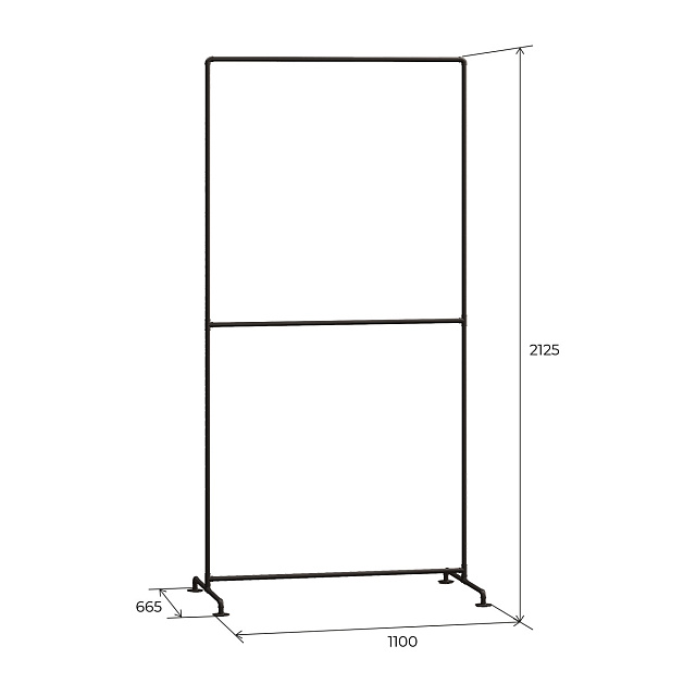 Вешалка двуxуровневая напольная в стиле Лофт Larvij, 1100x2130 мм, черный, PIPE03.1BL