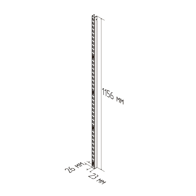 Через специальные пазы повесьте стойку на закрепленный к стене рельс. После установки всех элементов системы хранения зафиксируйте стойки крепежом, соответствующим типу стены, через специальные отверстия вдоль стоек.
