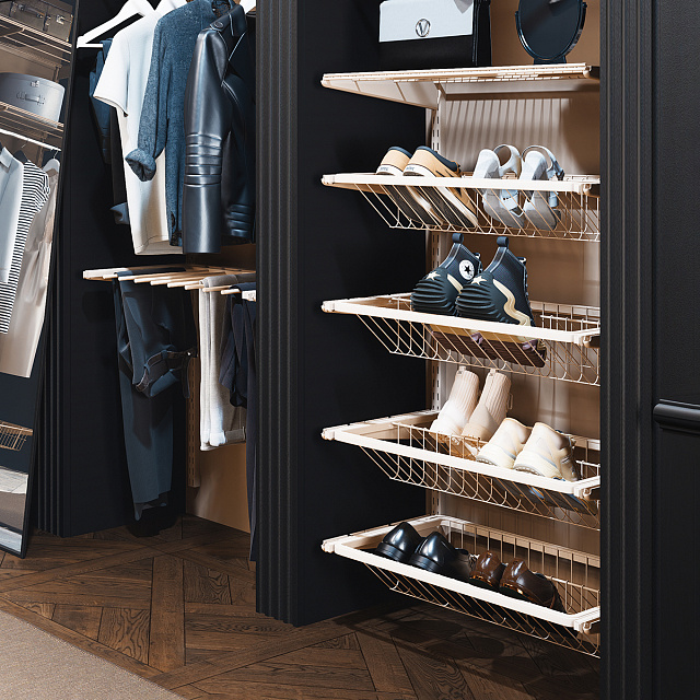 Вставьте обувницу в выдвижную раму или установите на телескопические направляющие.