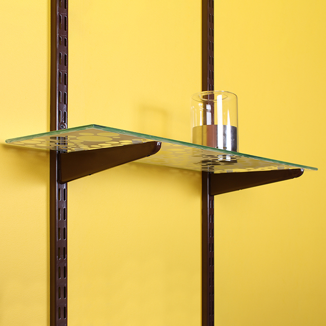 Коричневая двухпазная стеновая стойка. Один из основных элементов усиленной системы Mensola, на который навешиваются двухпазные кронштейны.
