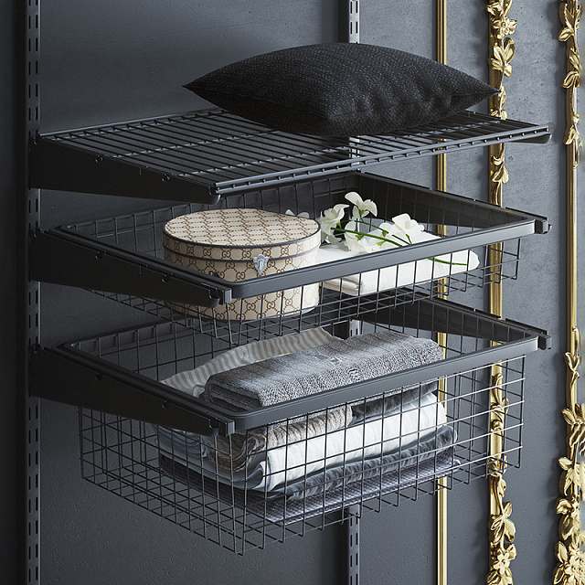 Разместите раму в пазы кронштейнов серии L9240. При правильной установке механизм выдвижения должен срабатывать плавно. В раму установите выдвижную обувницу, проволочную или мелкосетчатую корзину для рамы.